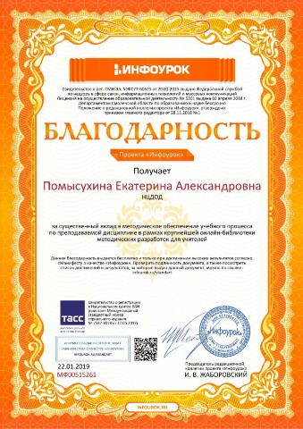 Благодарность за вклад в методическое обеспечение учебного процесса в рамках крупнейшей онлайн-библиотеки |