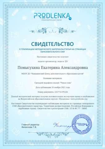 Свидетельство о публикации сценария познавательно-развлекательной программы "Ералаш" |